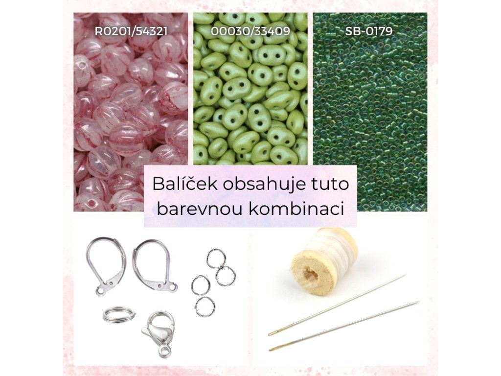 Balíček obsahuje veškerý materiál na výrobu náramku, náhrdelníku a náušnic podle online minikurzu zdarma "Vytvoř si svůj jedinečný šperk" s Denisou Kangas.