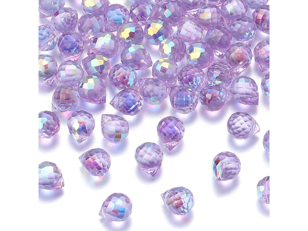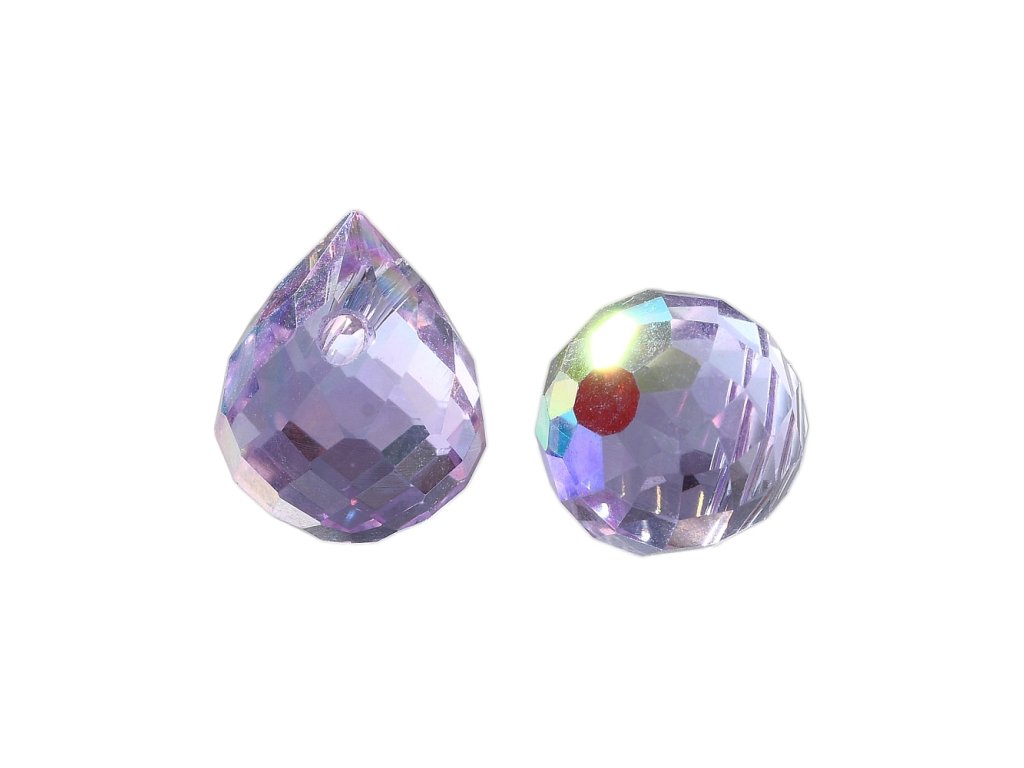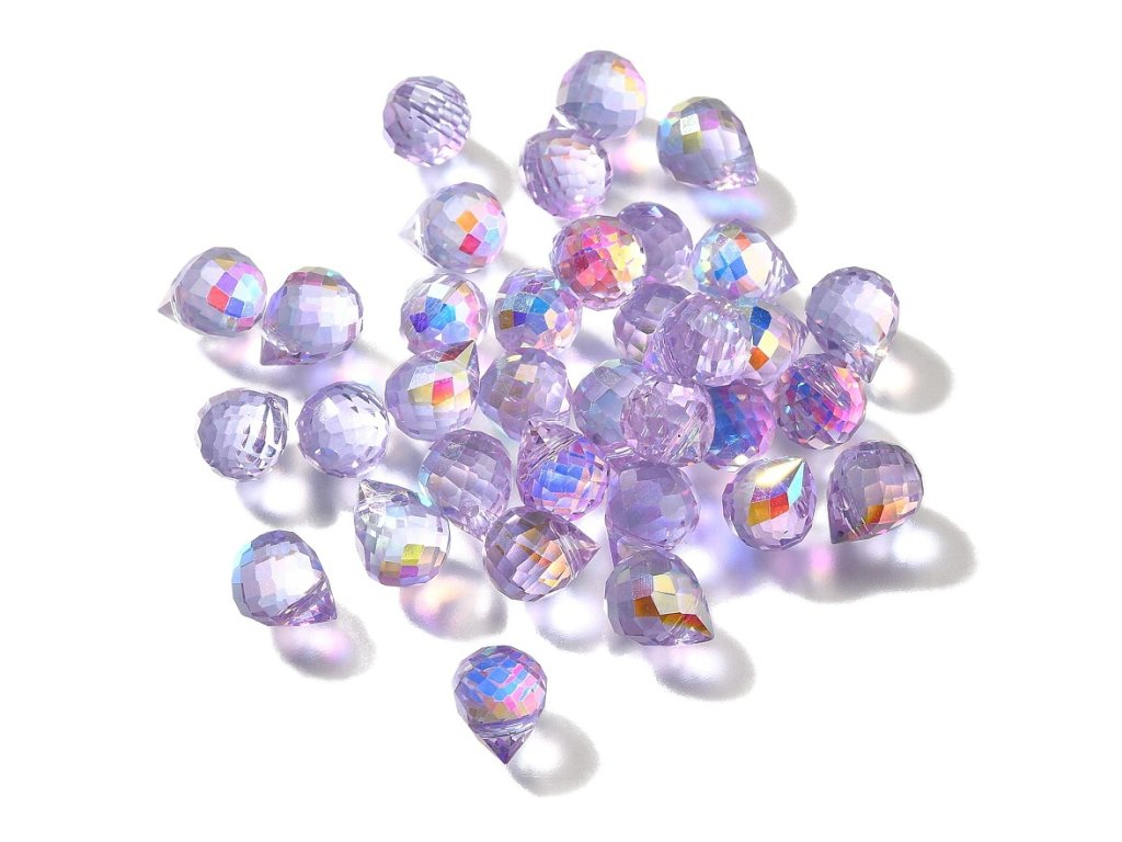 Broušená slza 10x8mm fialová AB