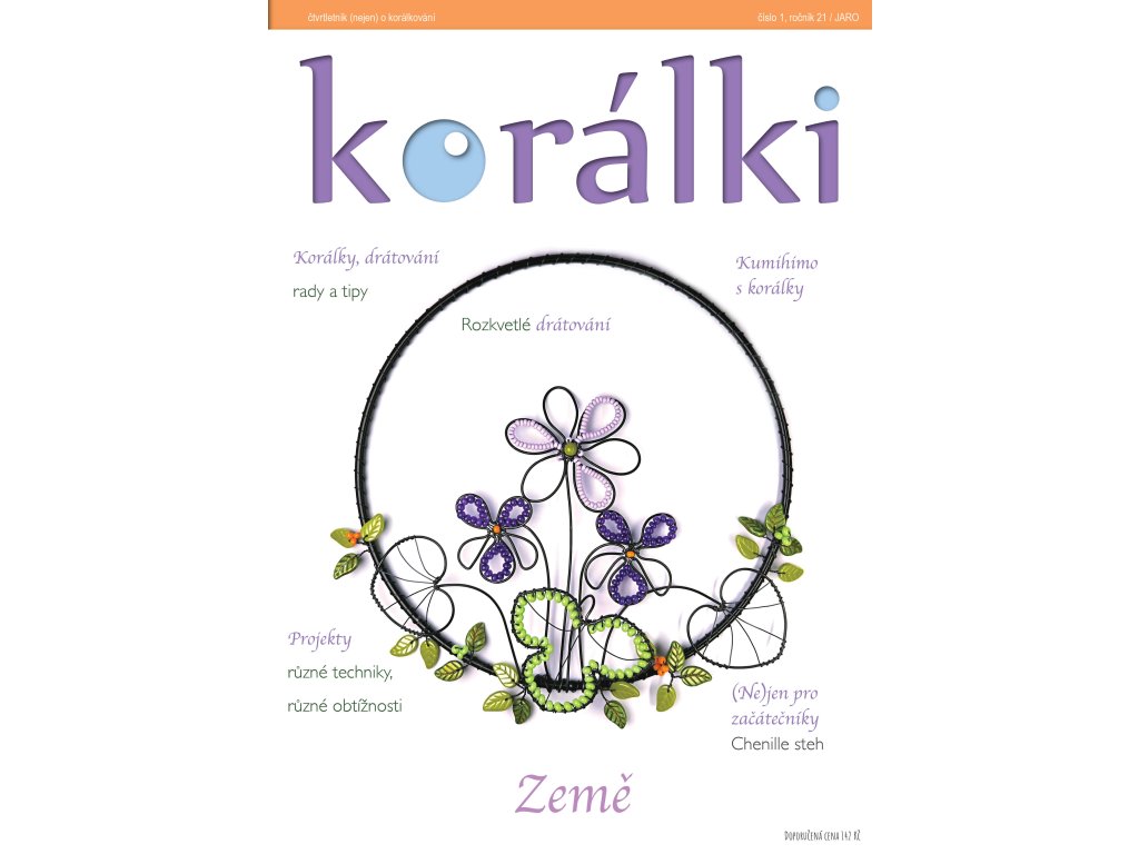 Najdete v něm korálkové projekty v jemných barvách - šité, drátované, háčkované, kroužkované nebo sutaškové. Vyrobte si s námi držák na ubrousky ve tvaru Eiffelovy věže, šperky z atraktivních korálků firmy Rutkovsky Beads, háčkovaný náhrdelník z dílny Aleksandry Lysenko nebo kroužky podle návodu Kateřiny Bacíkové, které můžete nosit samostatně jako elegantní šperk nebo použít ke skládání větších korálkových projektů.