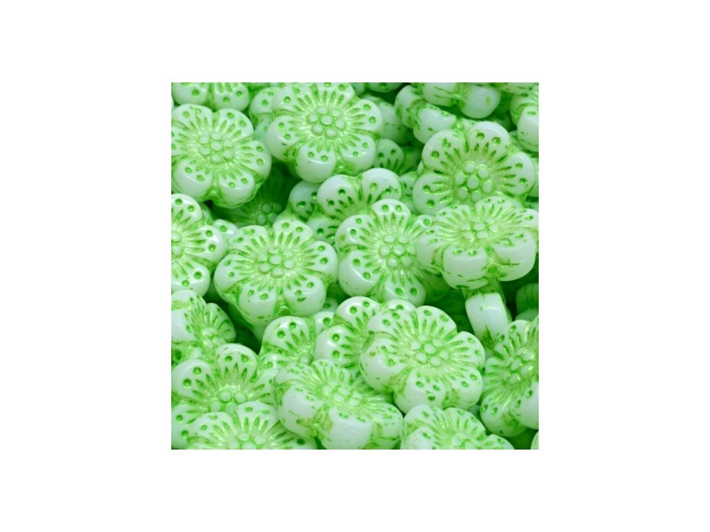 Korálky kytičky bílé sv. zelený zátěr