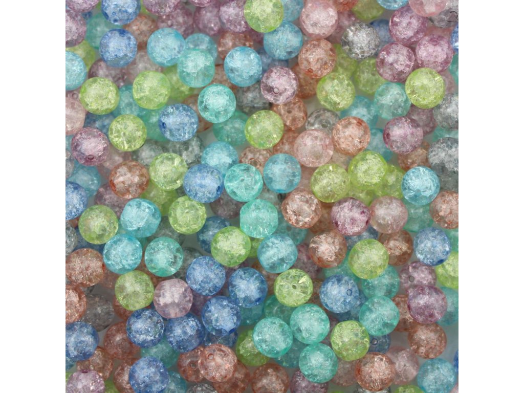Skleněné korálky ve tvaru kuličky s efektem popraskaného skla a barevným povrchem.