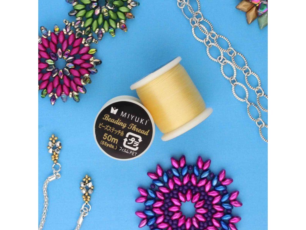 Pozdvihněte své korálkování na novou úroveň s nití Miyuki Bead Thread. Od 30. let 20. století nastavuje Miyuki zlatý standard ve výrobě skleněných perliček a zajišťuje přesnost a konzistenci v každém projektu. Naše předvoskovaná nylonová nit, vyrobená v Japonsku, se pyšní tloušťkou 0,2 mm a dodává se ve velkorysé 50metrové cívce, což poskytuje dostatek materiálu pro vaše kreativní počiny. Tato nit je ideální pro jemné korálky, navlékání, tkaní a další, dodává vašim návrhům nádech elegance. Nit Miyuki Bead Thread nabízí bezkonkurenční všestrannost a odolnost, což zajistí, že vaše výtvory vyniknou nádhernými detaily a trvalou krásou. Pohánějte svou fantazii nekonečnými možnostmi. Ať už jste zkušený řemeslník nebo začátečník, naše nit je ideální pro projekty s perličkami, práci na tkalcovském stavu a tkaní korálků mimo tkalcovský stav, jako je peyote nebo cihlový steh. Prozkoumejte složité techniky a vzory s důvěrou s vědomím, že korálková nit Miyuki poskytuje perfektní základ pro vaše výtvory.