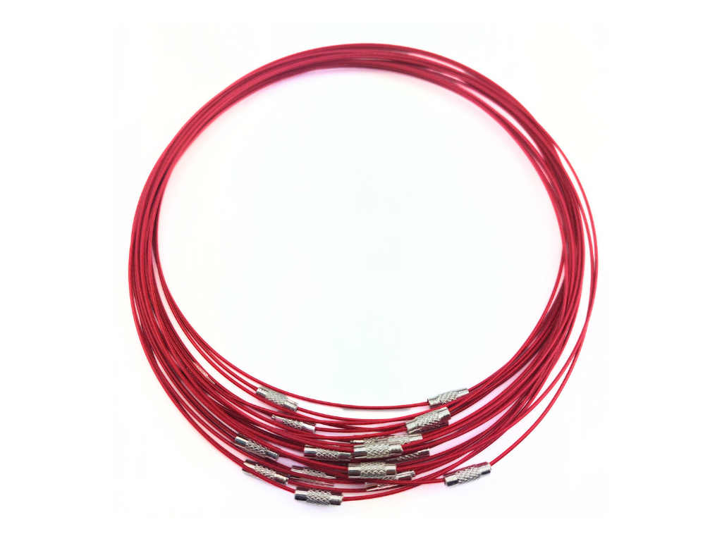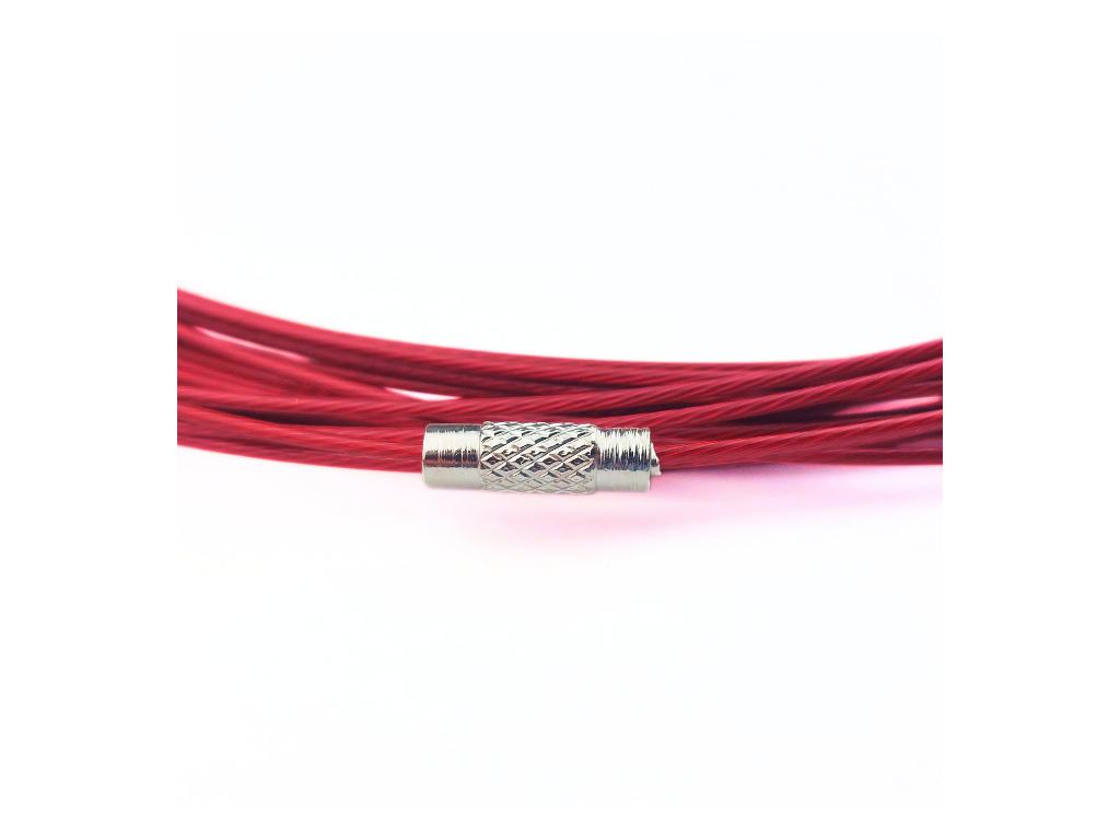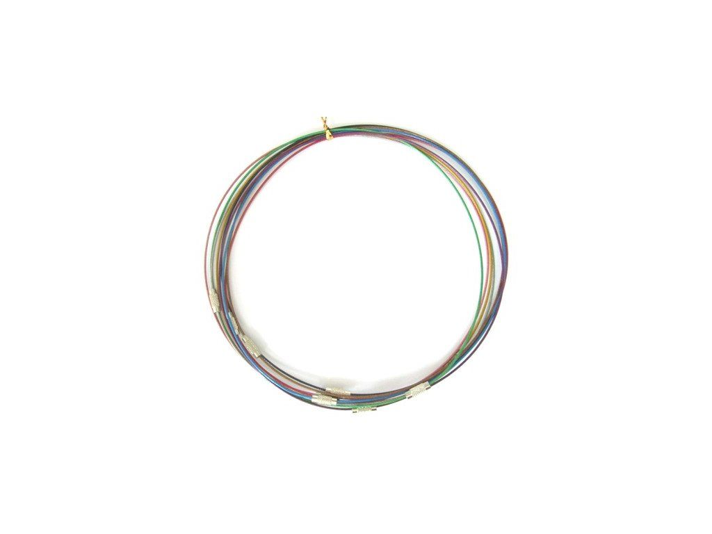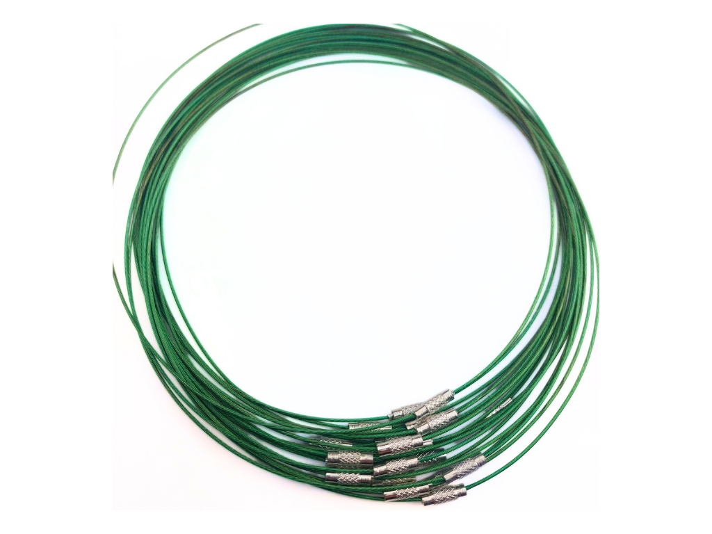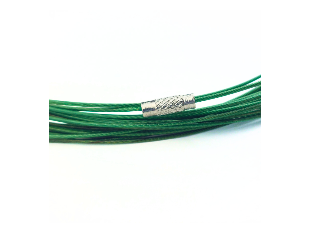 Ocelové lanko s nylonovým povrchem. Zapínáním projde korálek s dírkou větší než 3 mm