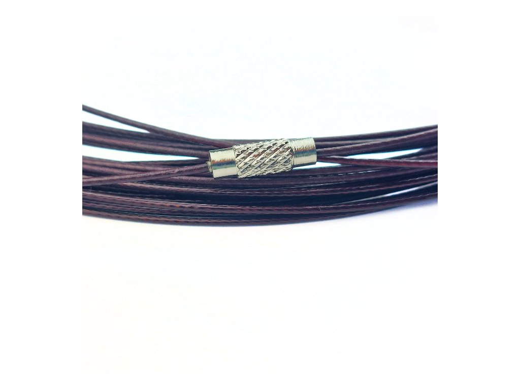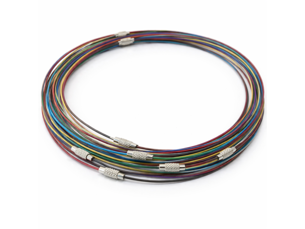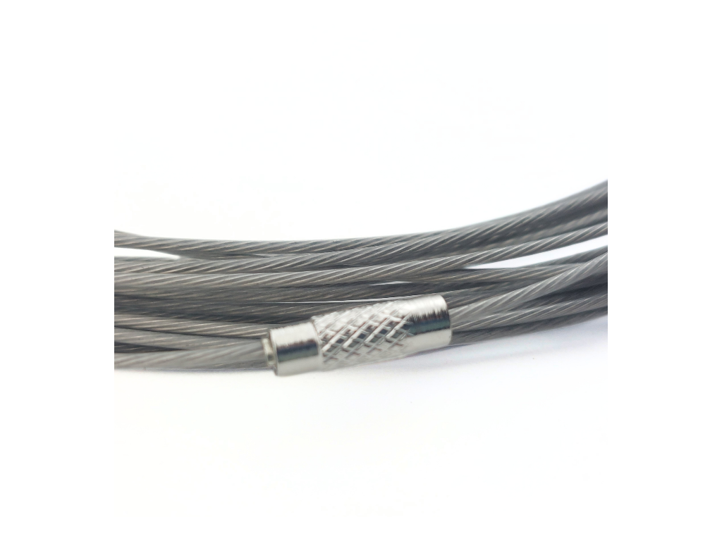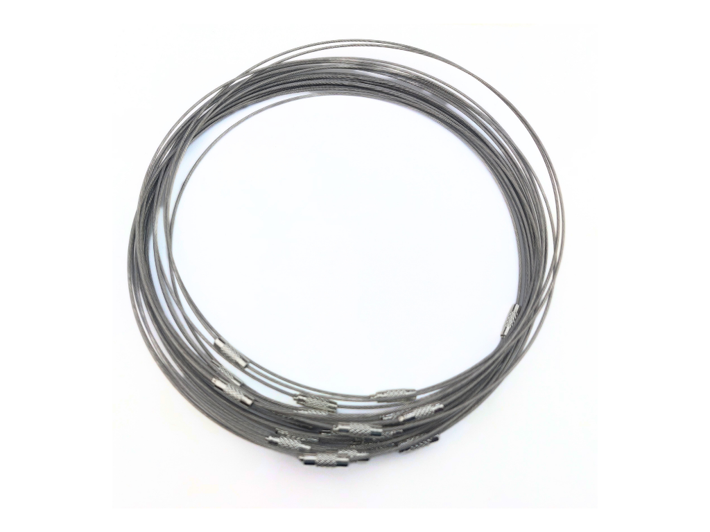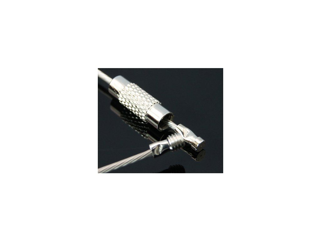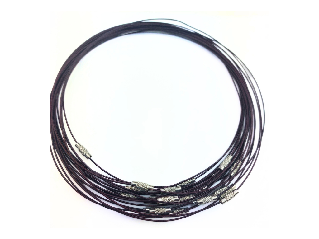 Ocelové lanko s nylonovým povrchem. Zapínáním projde korálek s dírkou větší než 3 mm