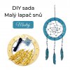Sada na výrobu menšího lapače snů s kruhem o průměru 15 cm. Sada obsahuje veškerý materiál a vytištěný návod s fotkami.
