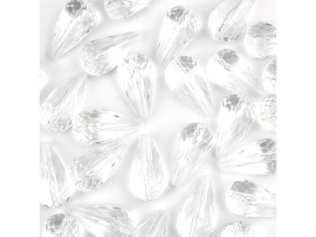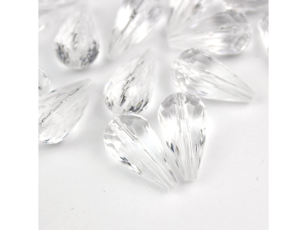 Čirý plastový korálek ve tvaru kapky s ploškovaných povrchem. Ideální k výrobě vánočních dekorací, andílků a šperků.