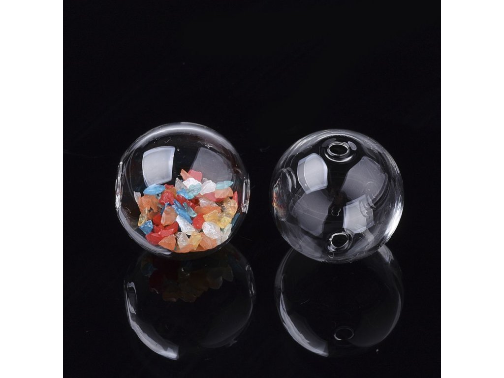 Duté foukané korálky ze skla. Každý korálek má dvě dírky a je uvnitř dutý. Do korálku lze vložit různou výplň, korálek navléknout nebo dírky zaslepit.