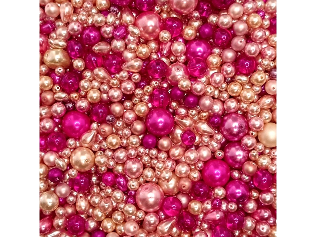 Mix českých skleněných voskovaných perel, kde jsou převážně kulaté korálky. Může obsahovat také kapky, hrušky, kostičky, olivky či jiné tvary. Velikost korálků je v rozmezí 2 až 18 mm.