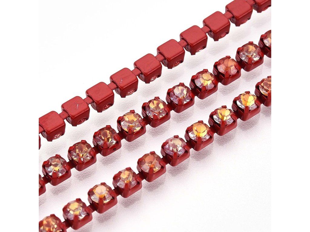 Štrasový řetízek 2,8 mm červený