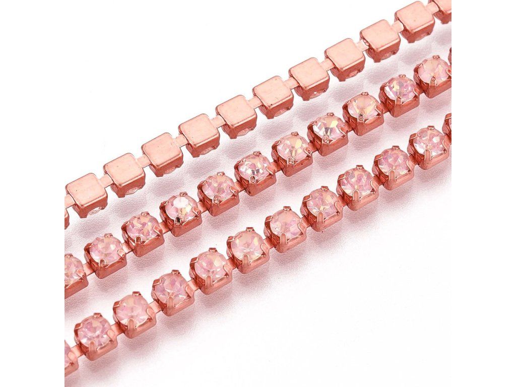 Štrasový řetízek 2,8 mm lososový