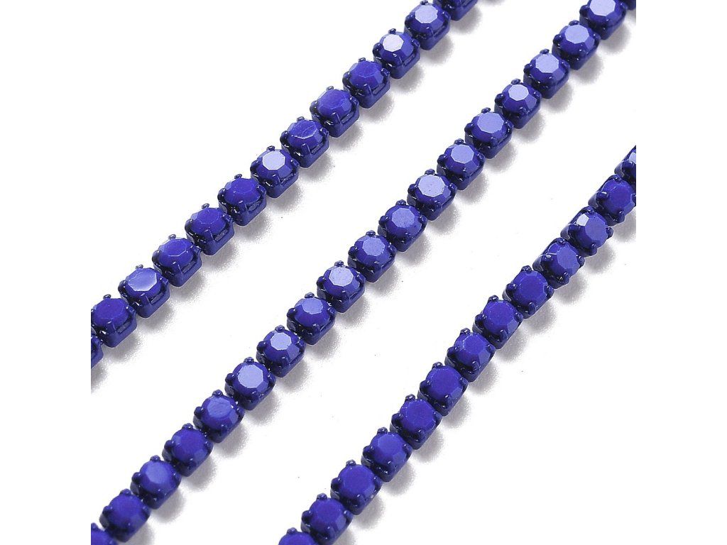 Štrasový řetízek 2 mm opakní tm. modrý