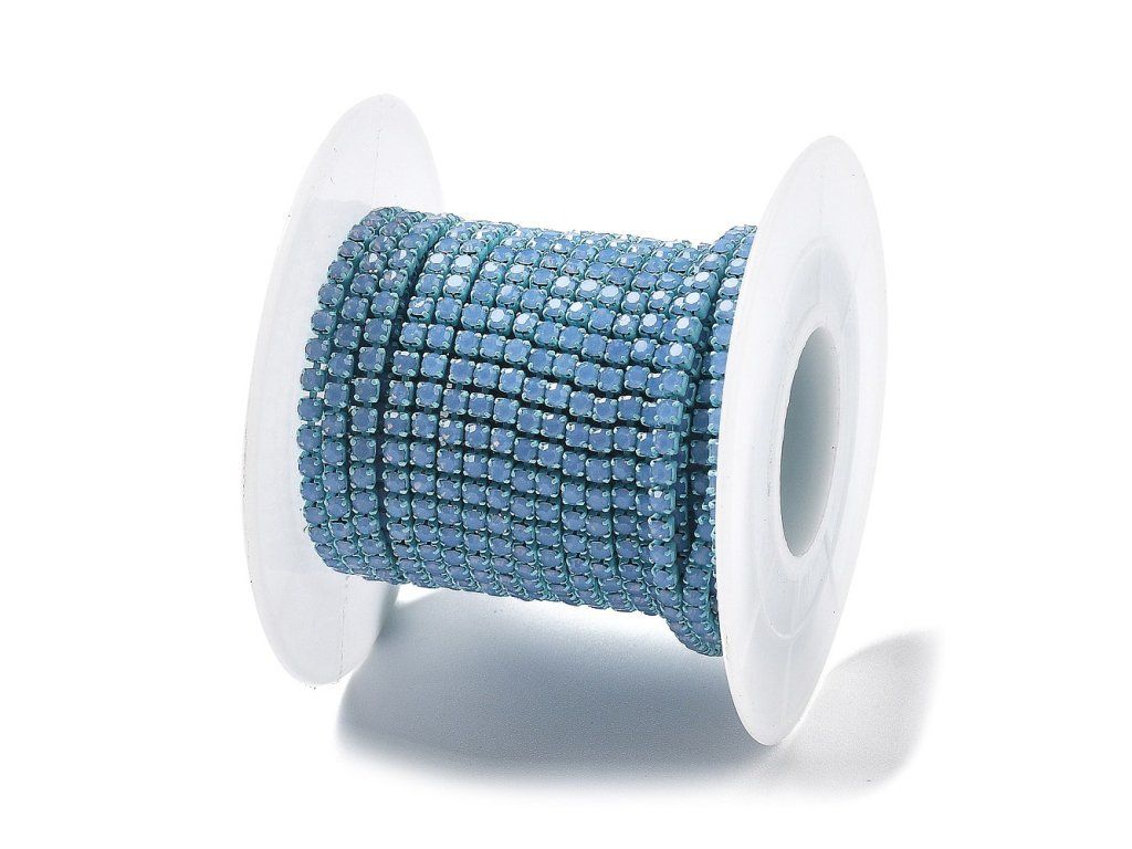 Štrasový řetízek 2 mm opakní tyrkysovomodrý