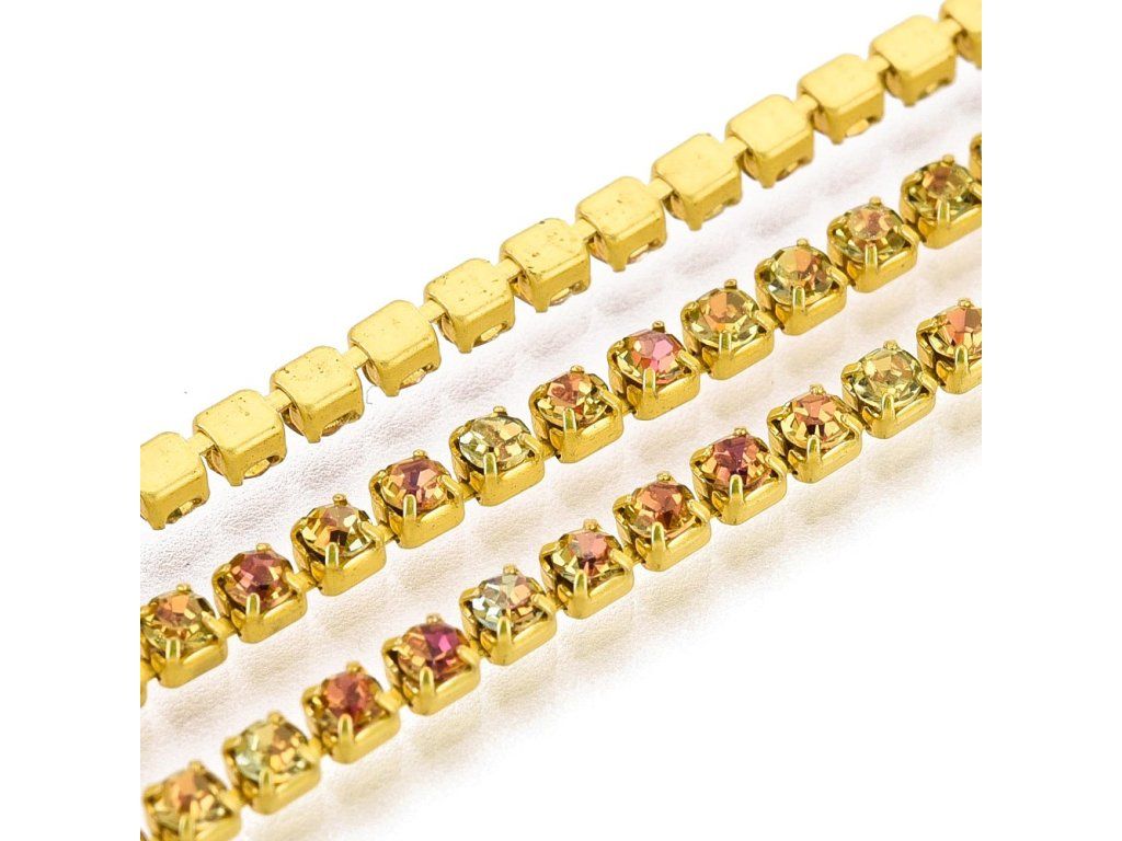 Štrasový řetízek 2 mm vitrail gold