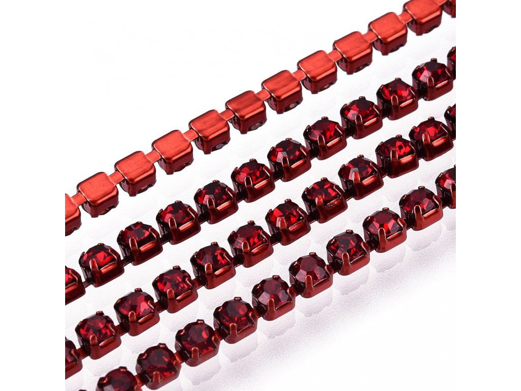 Štrasový řetízek o šířce 2 mm se skleněnými broušenými kamínky. Pohyblivá mezera mezi kamínky.