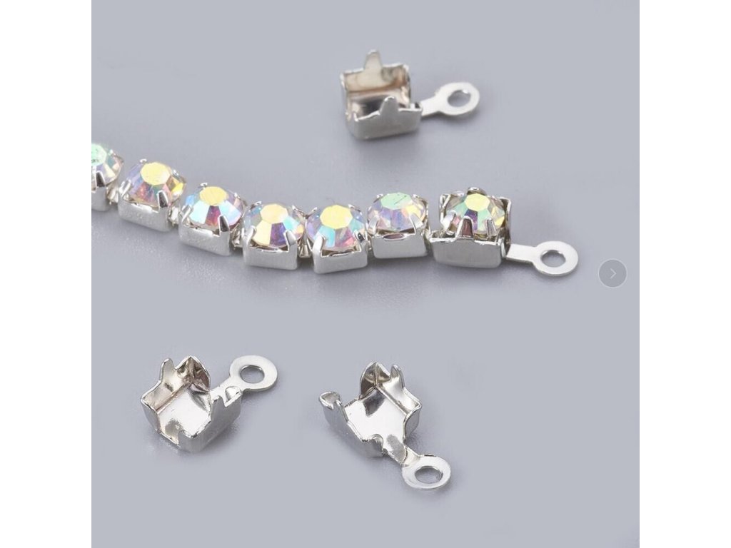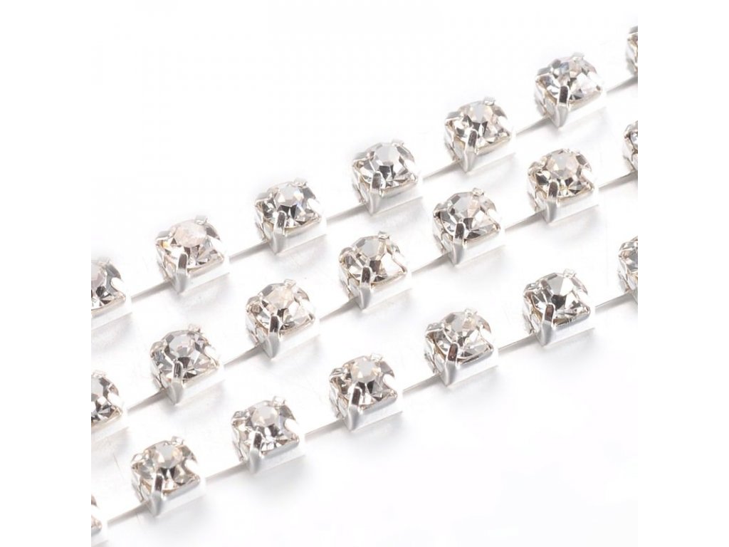Štrasový řetízek o šířce 2,8 mm s čirými skleněnými broušenými kamínky. Pohyblivá mezera mezi kamínky.
