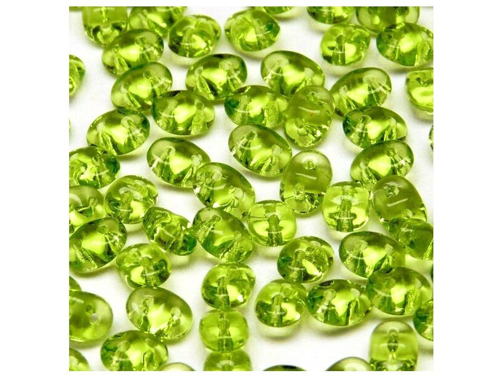 Mačkané dvoudírkové korálky Superduo olivín