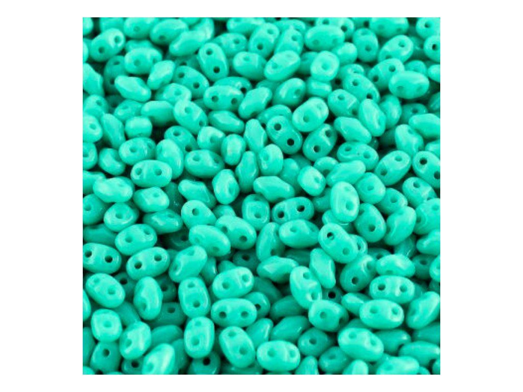 Mačkané dvoudírkové korálky Superduo tyrkys